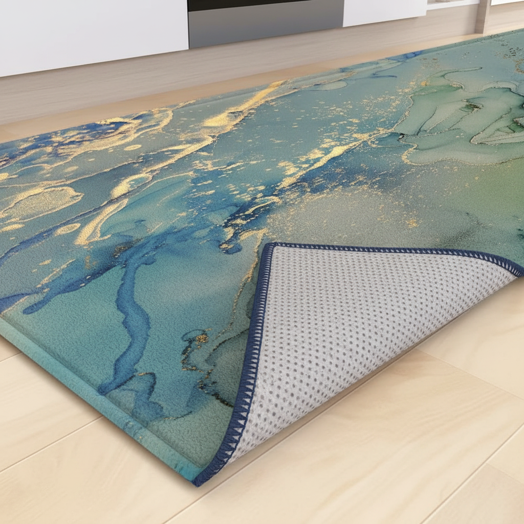 Usage et avantages du **Tapis Cuisine Abstrait Bleu Or Antidérapant**