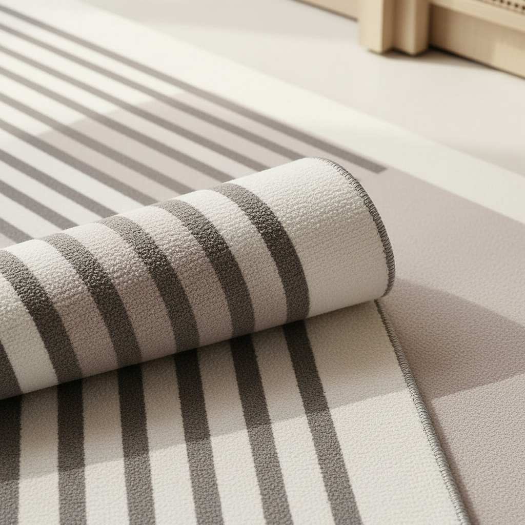 Ce Tapis Cuisine beige à rayures antidérapant allie esthétique moderne et fonctionnalité, idéal pour sécuriser et embellir votre espace culinaire. Son design épuré s'intègre harmonieusement dans diverses décorations intérieures.