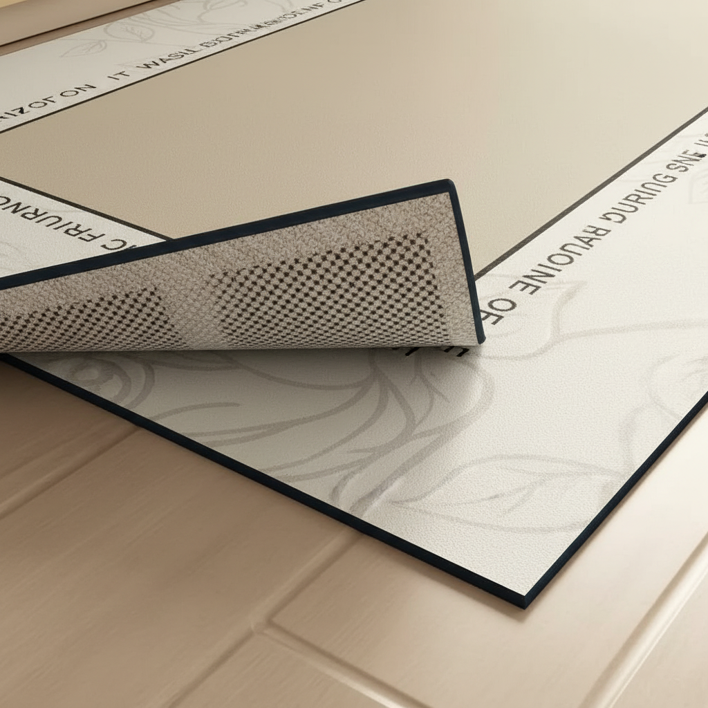 Ajoutez une touche d'élégance et de sécurité à votre cuisine avec ce tapis beige au design moderne.
