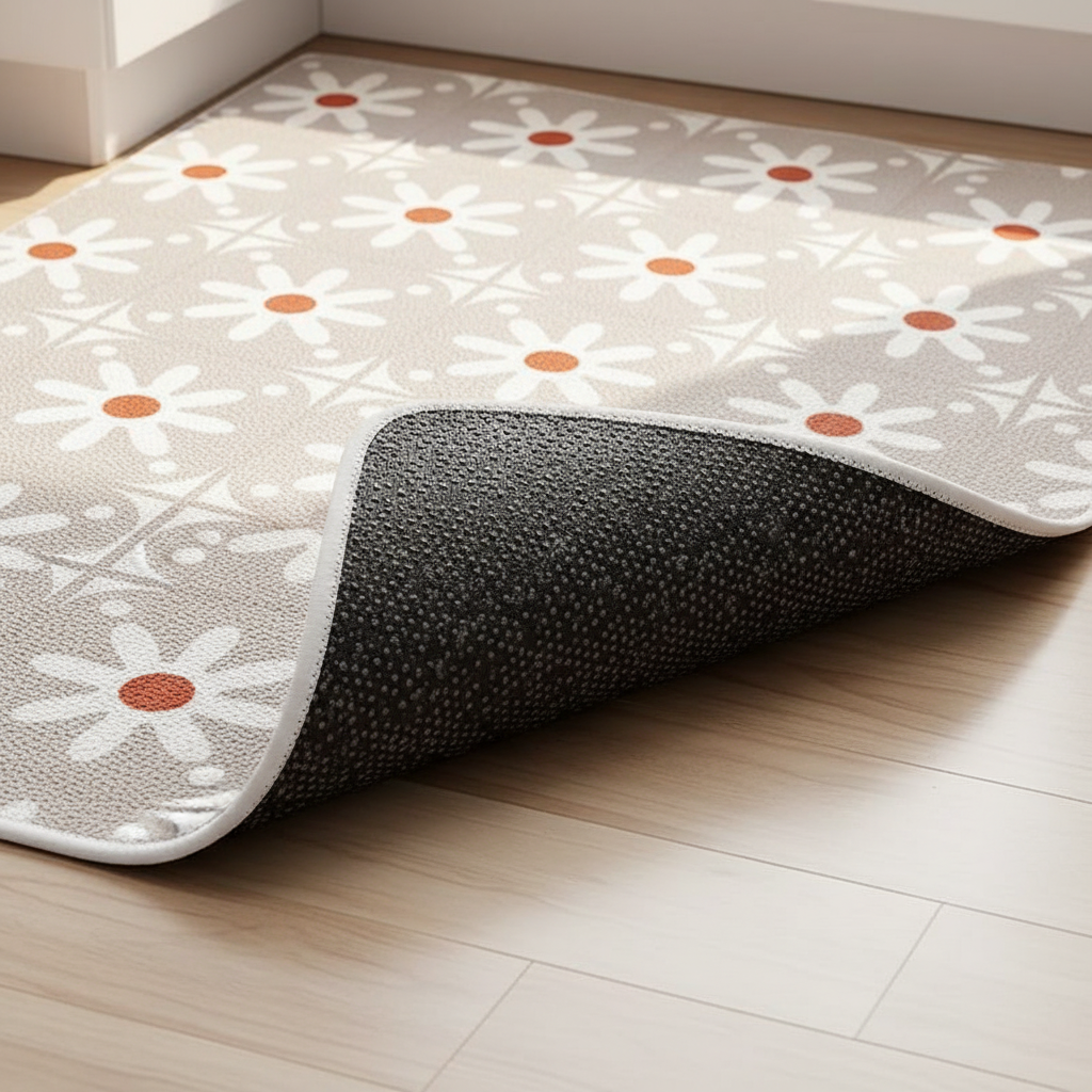 Utilisation du Tapis Cuisine beige floral imperméable au Quotidien