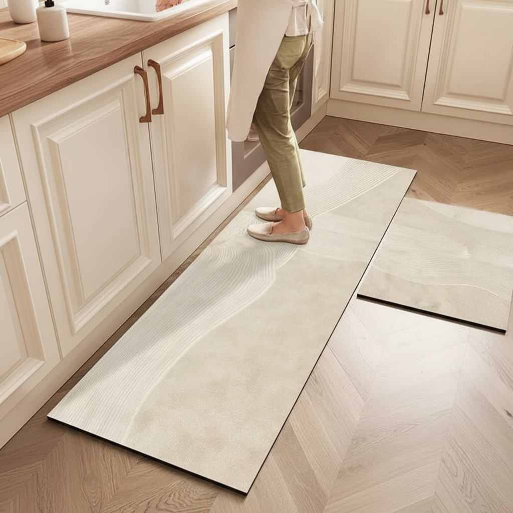 Tapis Cuisine beige motif abstrait antidérapant : Confort et Style pour Votre Espace Culinaire