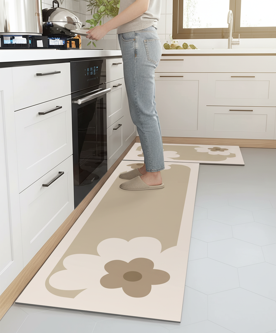 ```- Entretenez votre Tapis Cuisine beige motif floral antidérapant naturel en le nettoyant facilement avec une éponge humide ou un lavage doux, puis laissez-le sécher à l’air libre. Cette routine simple permet de préserver ses couleurs, sa texture et sa durabilité, même après une utilisation quotidienne dans la cuisine.