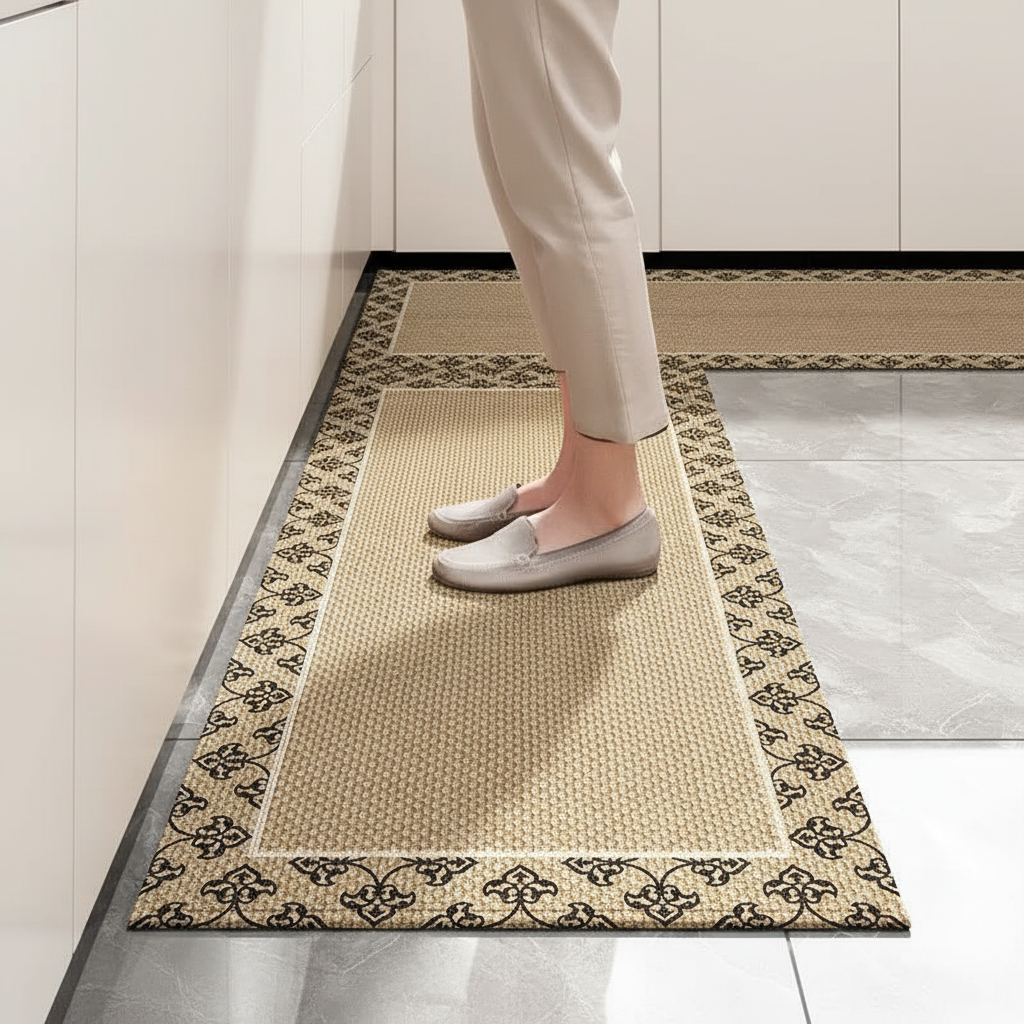 Optimisez Votre Espace avec le Tapis Cuisine beige motif noir antidérapant