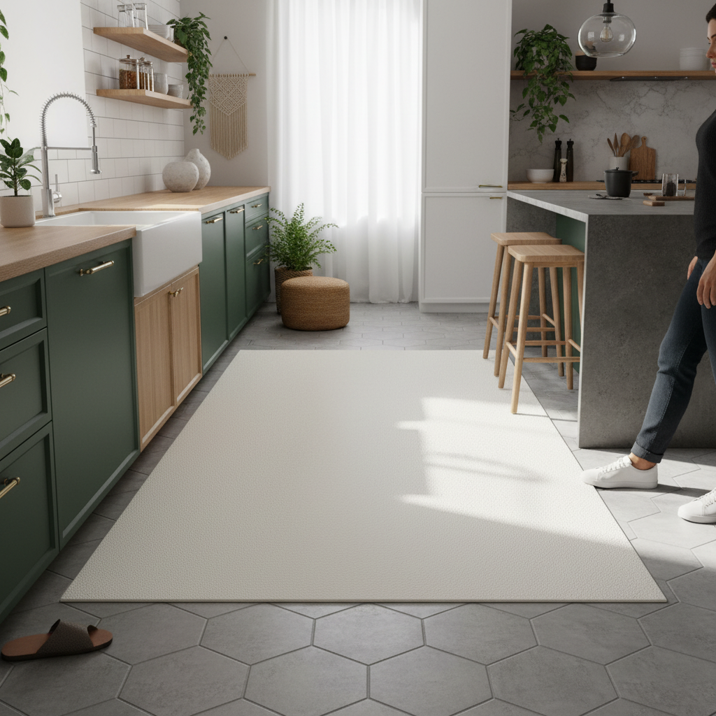 Découvrez ce tapis de cuisine beige uni antidérapant, conçu pour apporter une touche d'élégance discrète et une fonctionnalité essentielle à votre espace culinaire.