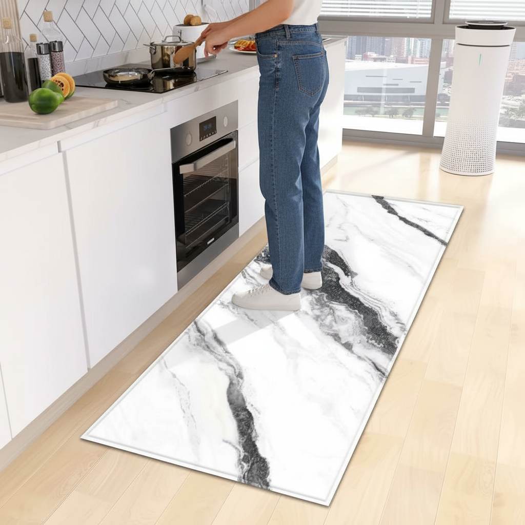 Apportez une touche d'élégance moderne et de sécurité à votre cuisine avec ce tapis marbré.