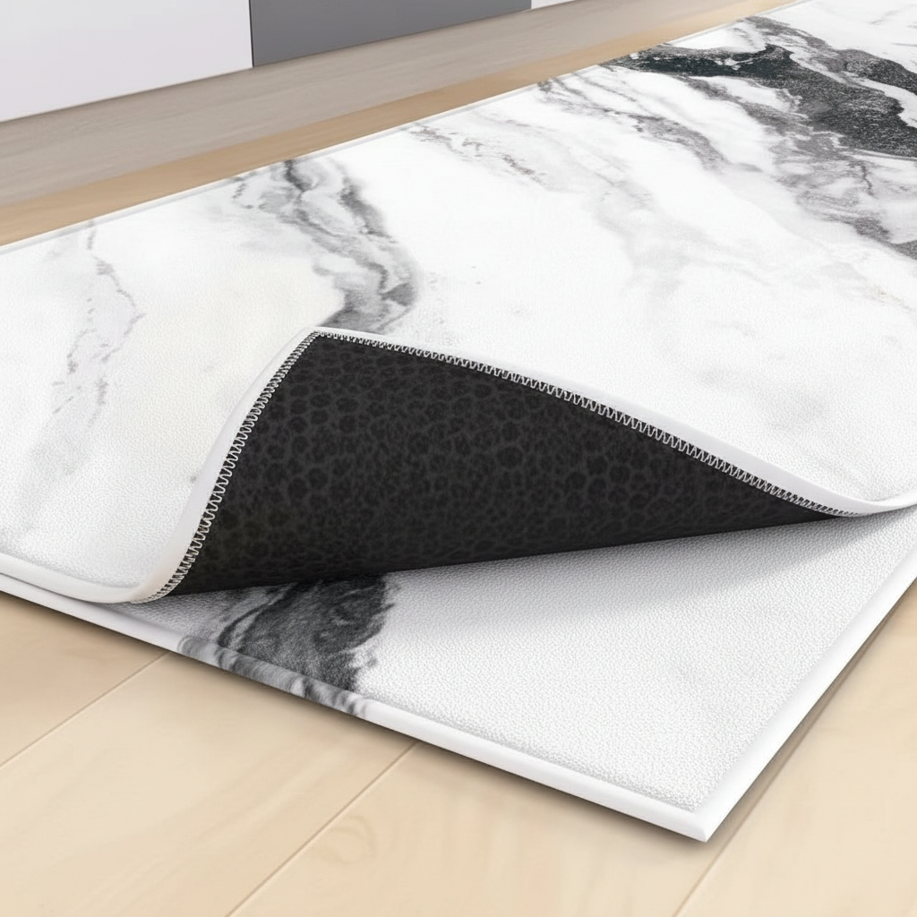 Tapis Cuisine blanc marbré noir antidérapant – Élégance et Sécurité
