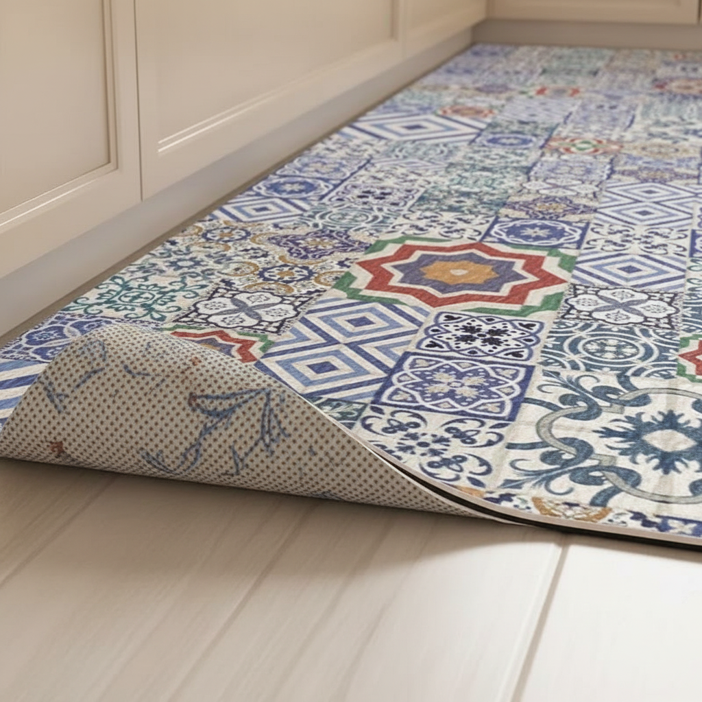 Usage et avantages du Tapis Cuisine bleu carreaux antidérapant