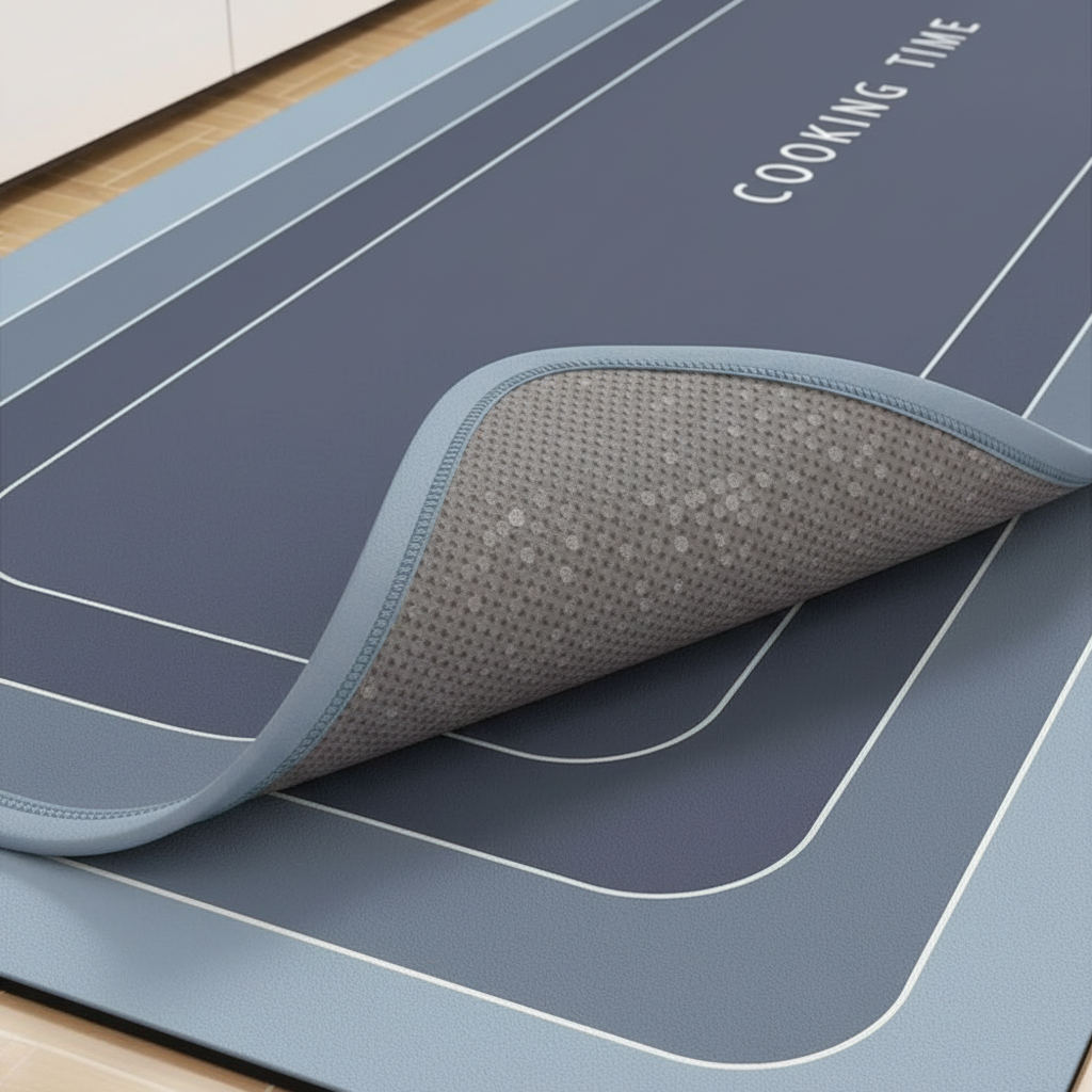 Apportez une touche de modernité et de sécurité à votre cuisine avec ce tapis bleu dégradé.