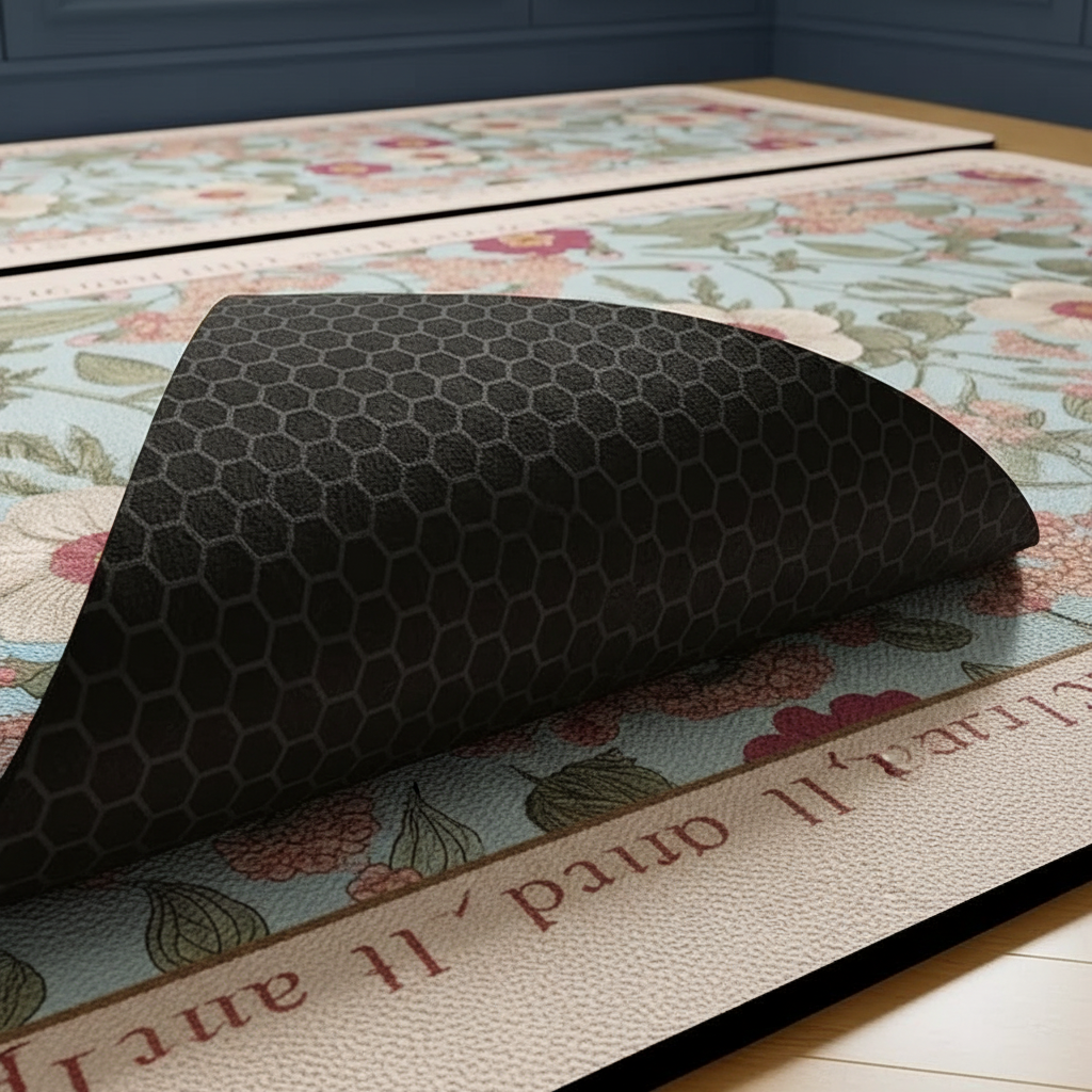 Le Tapis Cuisine bleu fleuri antidérapant en Cuir : Élégance et Sécurité