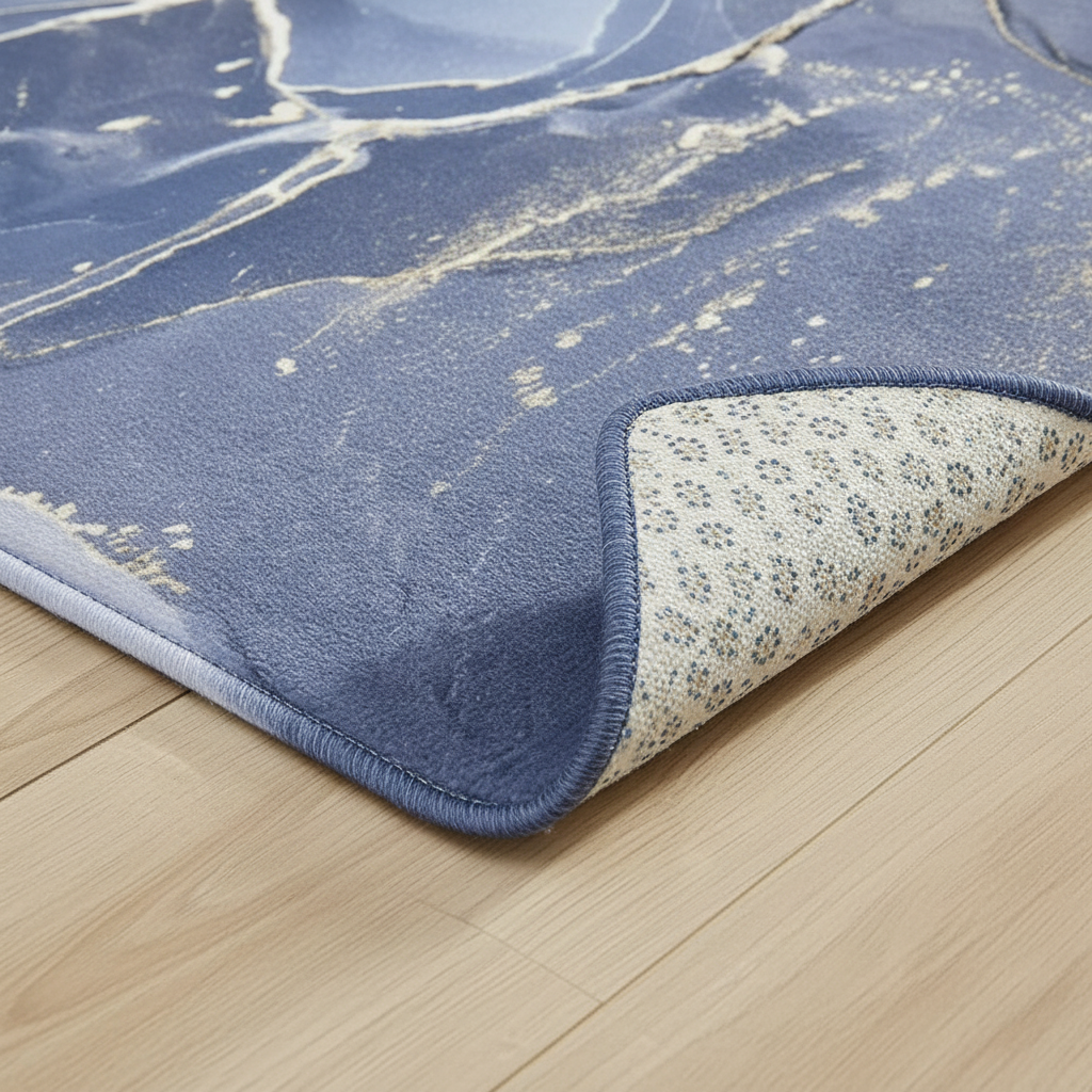 Tapis Cuisine bleu marbré antidérapant décoratif : Élégance et Sécurité
