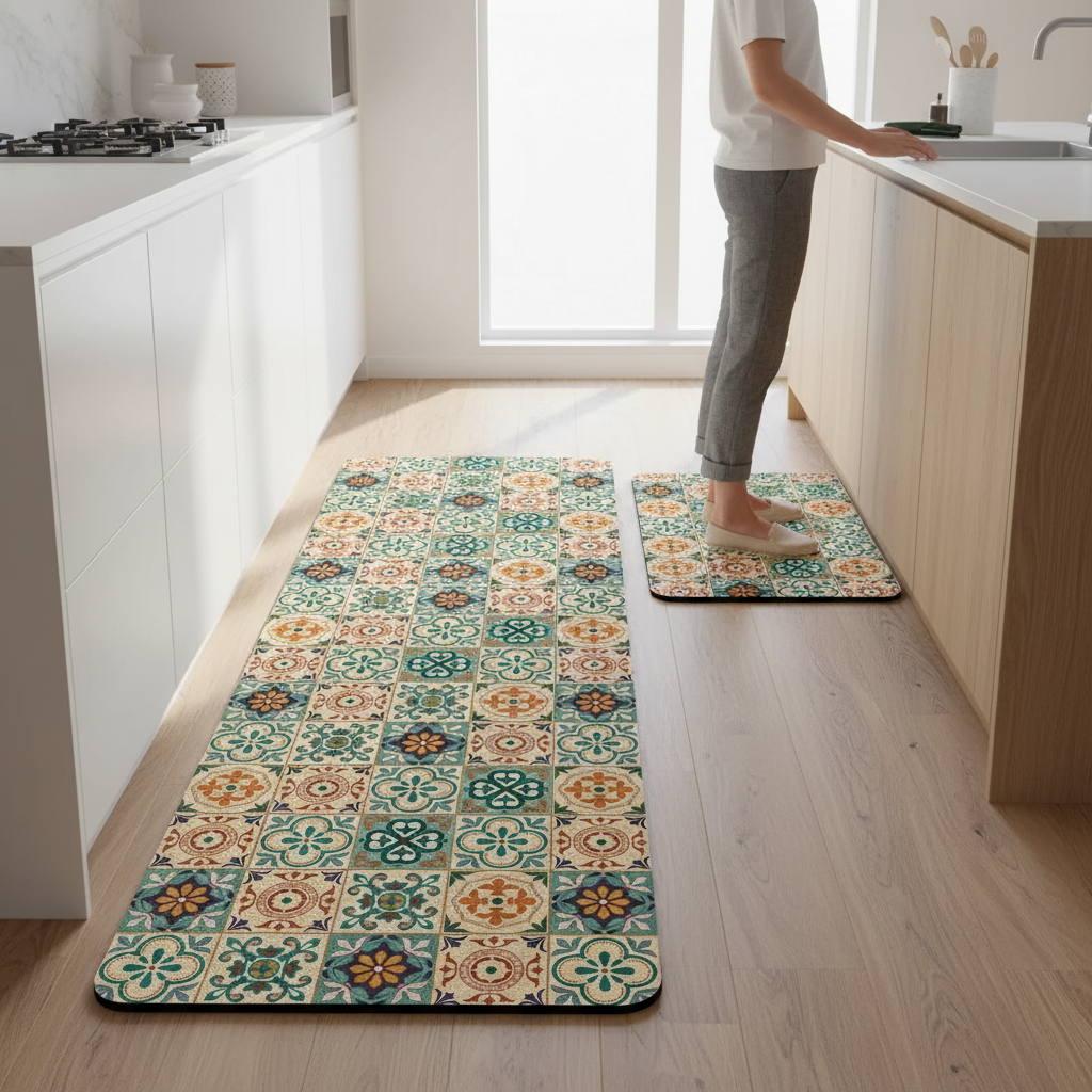 Tapis Cuisine carreaux de ciment multicolore imperméable au design moderne