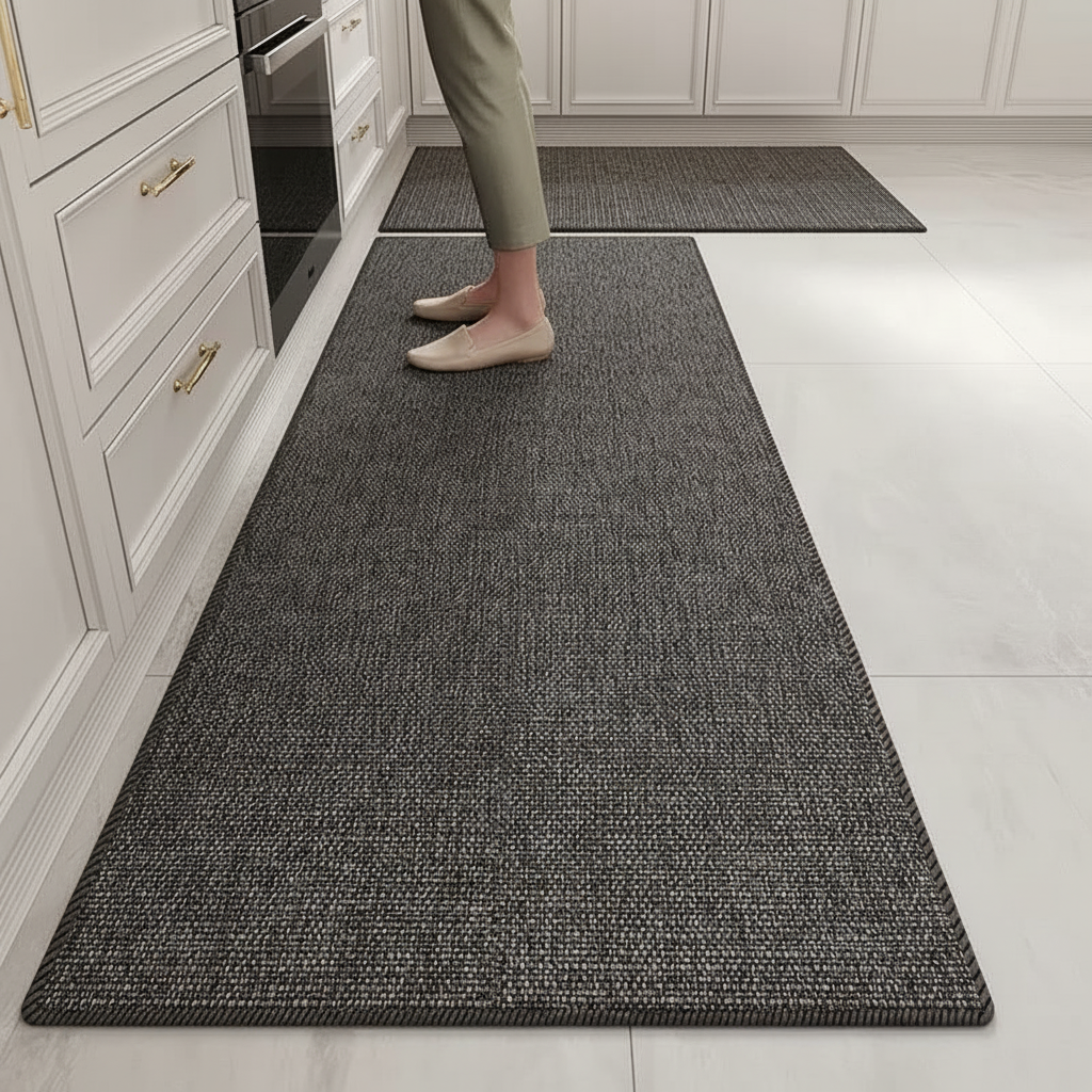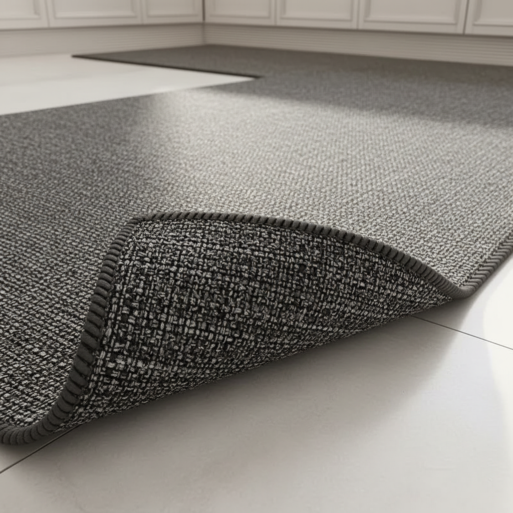 Tapis Cuisine chiné gris long antidérapant : Confort et Sécurité