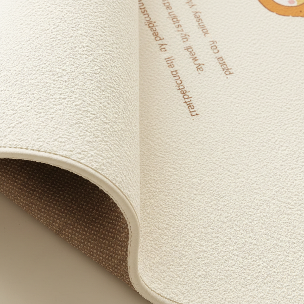Ce Tapis Cuisine Crème Motif Mignon Antidérapant apporte une touche de douceur et de fantaisie à votre cuisine tout en protégeant votre sol. Fabriqué en PVC Leather, il combine durabilité et facilité d'entretien pour un usage quotidien.
