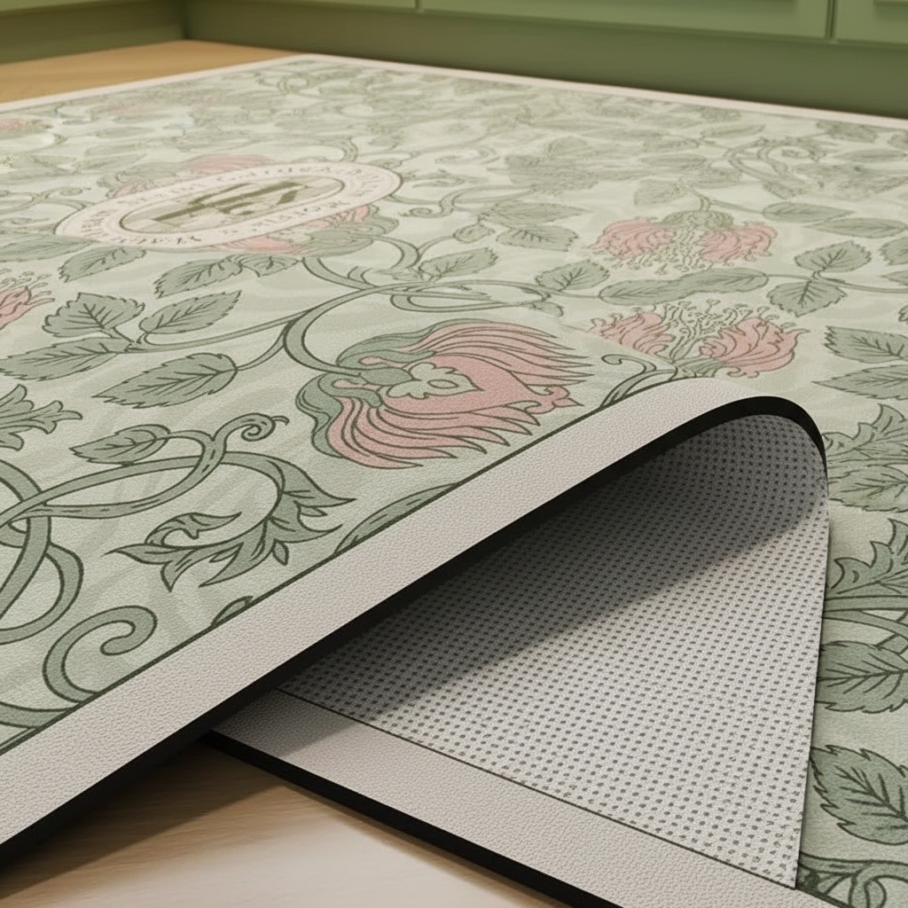 Tapis Cuisine floral vert pâle imperméable : Élégance et Protection