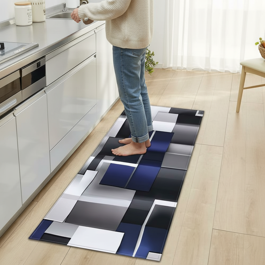 Tapis Cuisine géométrique 3D bleu antidérapant : Style et Sécurité
