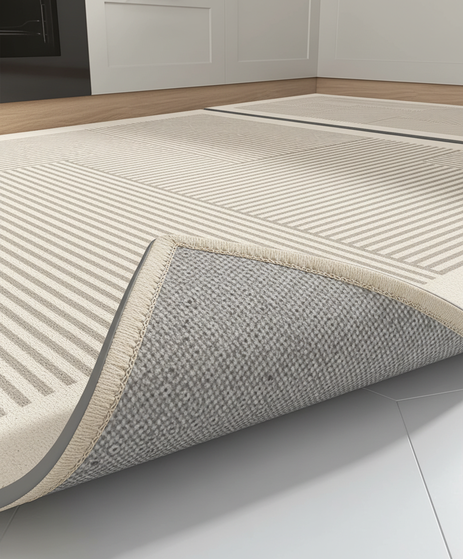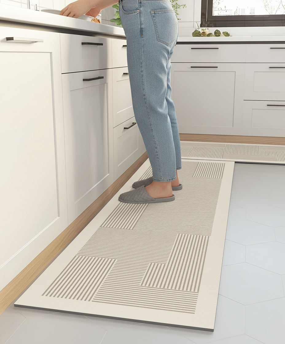 Tapis Cuisine géométrique écru antidérapant : Style et Sécurité