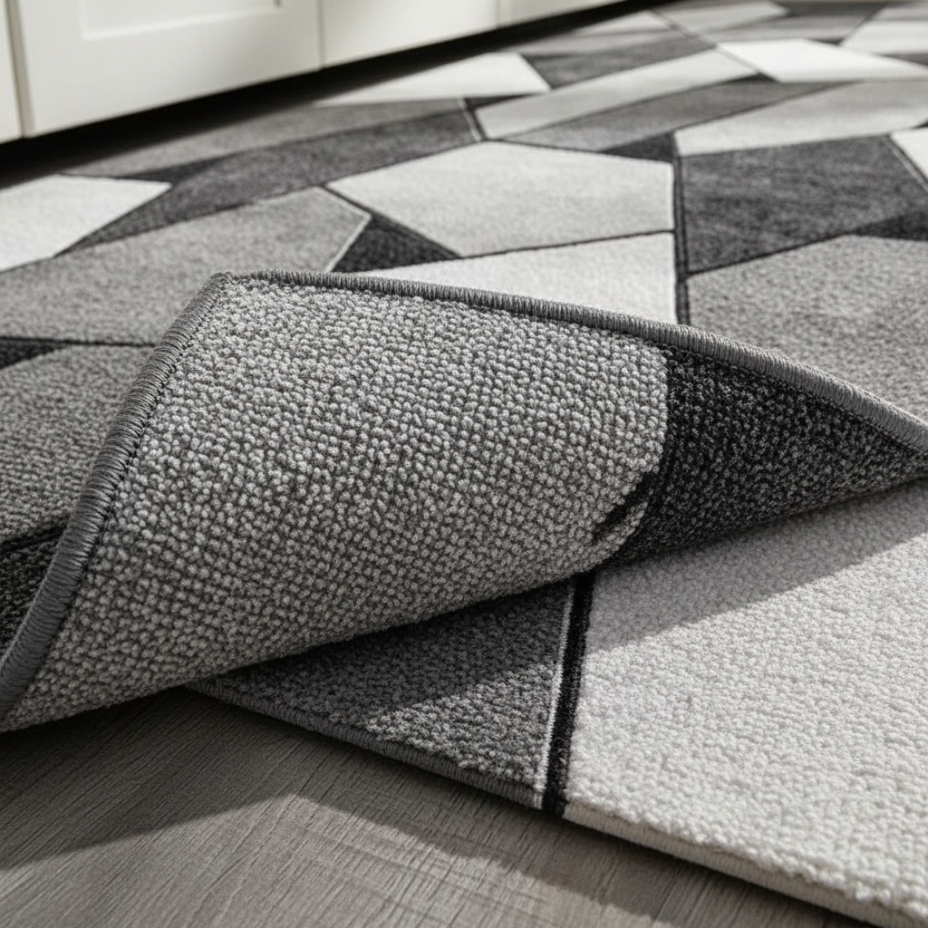 Tapis Cuisine géométrique gris antidérapant : Design Moderne et Sécurité