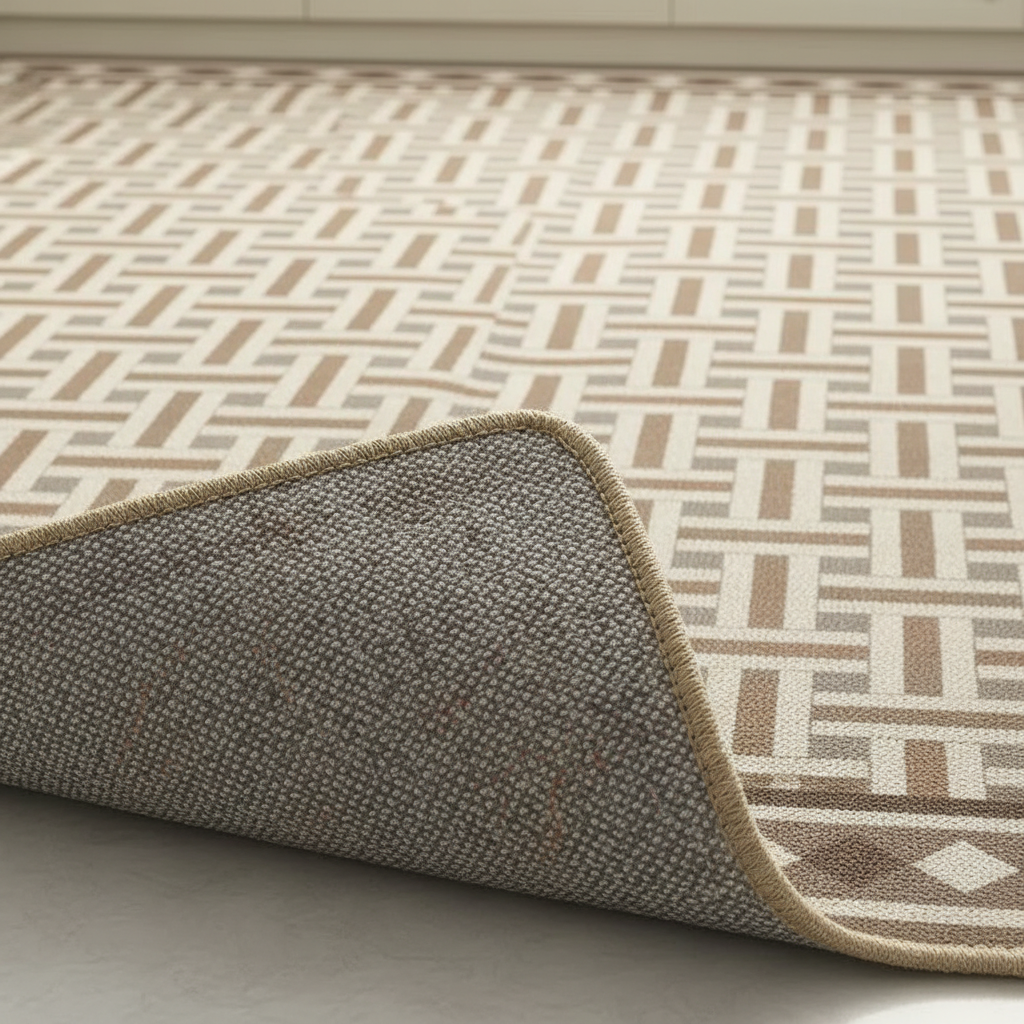Apportez une touche d'élégance moderne et de sécurité à votre cuisine avec notre tapis géométrique marron antidérapant.