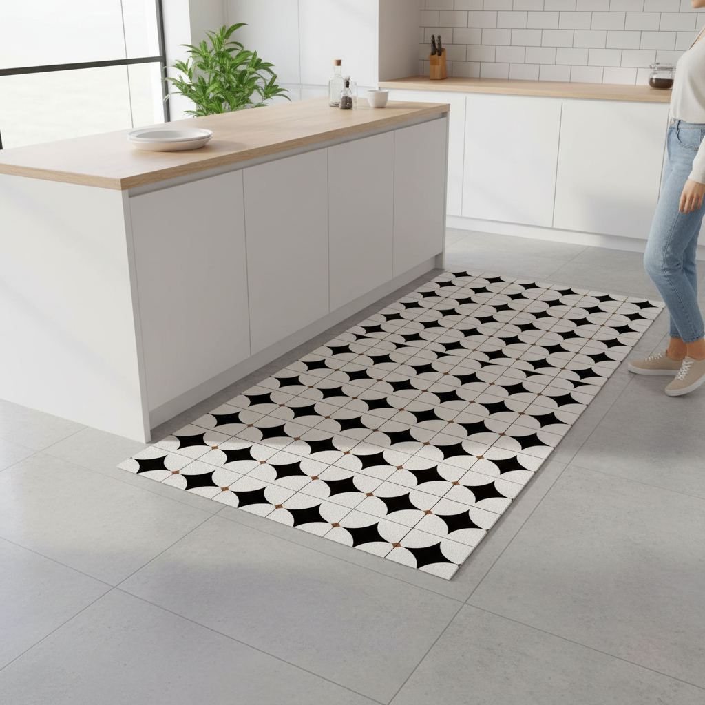 Tapis Cuisine géométrique noir et blanc anti-taches pour une protection élégante