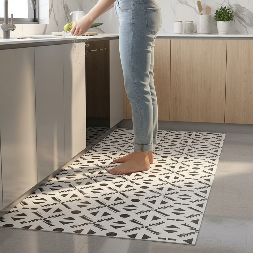 Idéal pour les zones de passage, il protège efficacement votre sol des éclaboussures et de l'usure quotidienne, tout en rehaussant l'esthétique de votre cuisine par son design moderne.