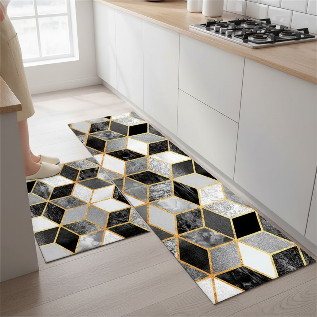 Utilisation du Tapis Cuisine géométrique noir or moderne