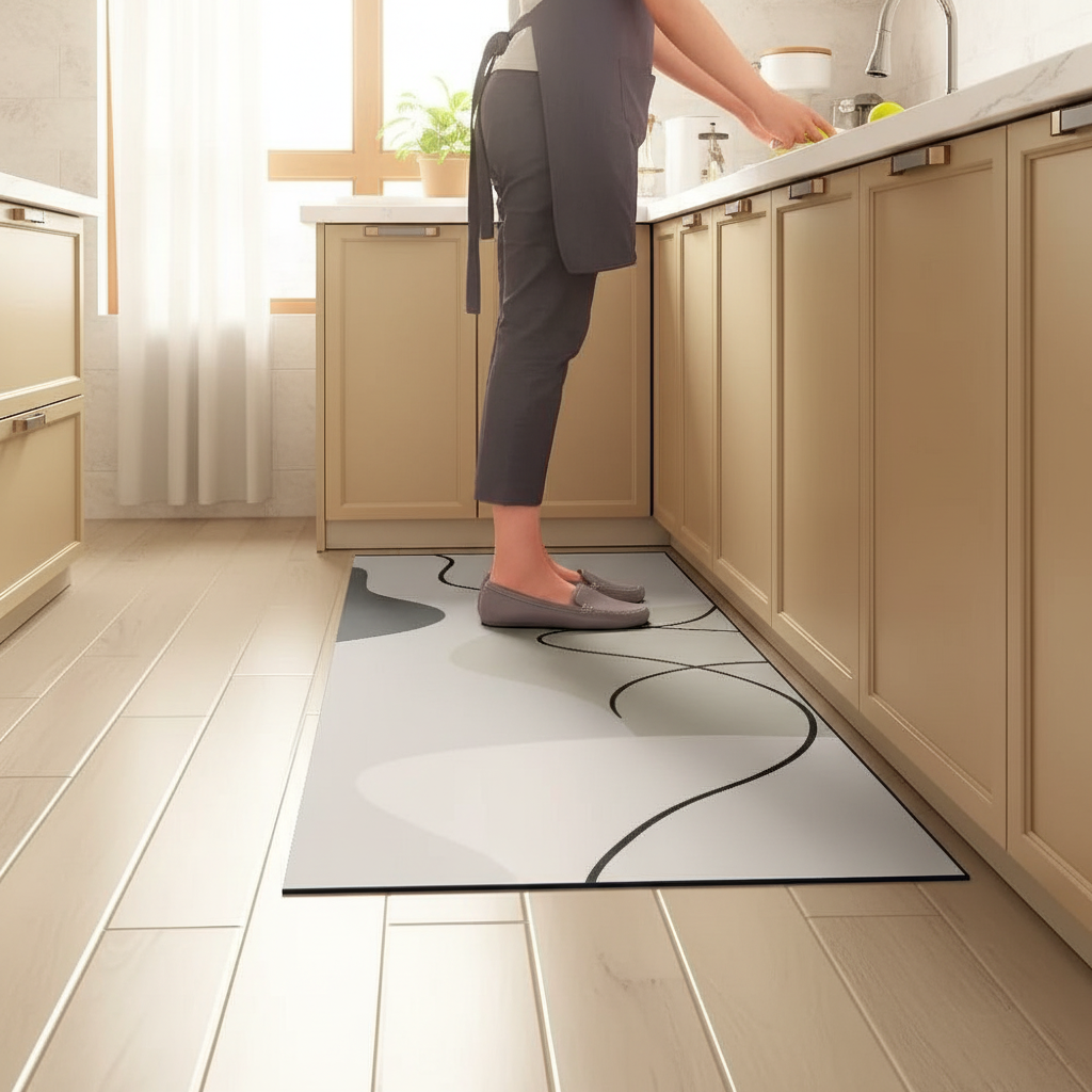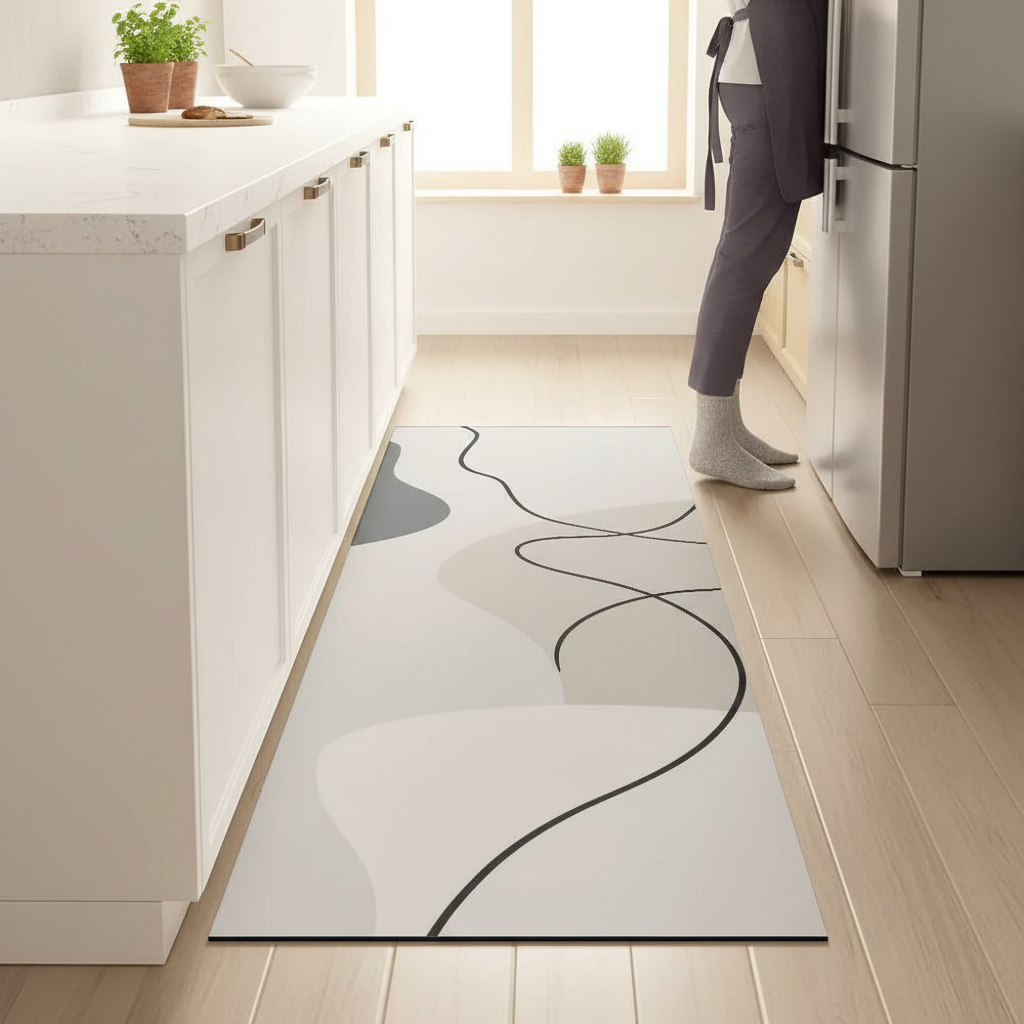 Tapis Cuisine gris abstrait antidérapant : Style Moderne et Sécurité