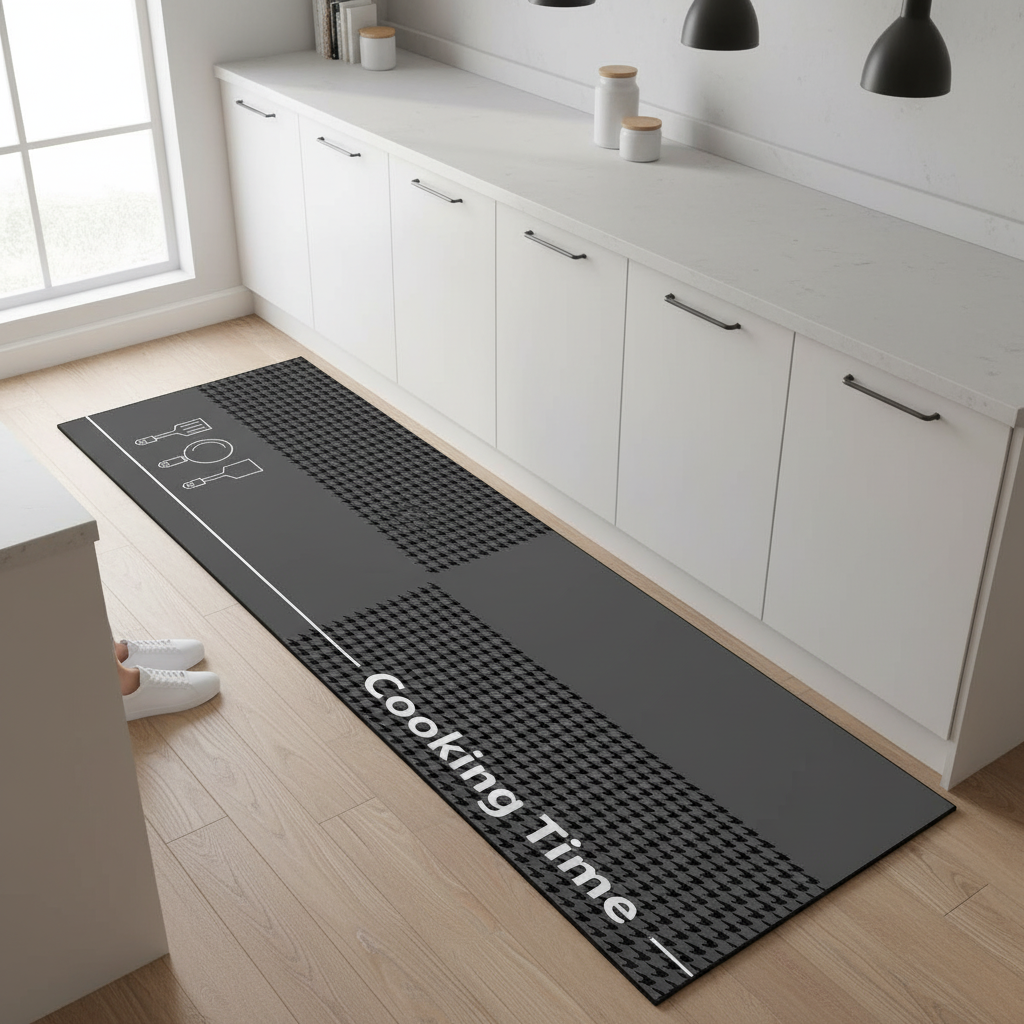 Ce tapis de cuisine gris anthracite allie fonctionnalité et esthétique moderne, offrant une surface antidérapante et un design géométrique élégant pour votre espace culinaire.