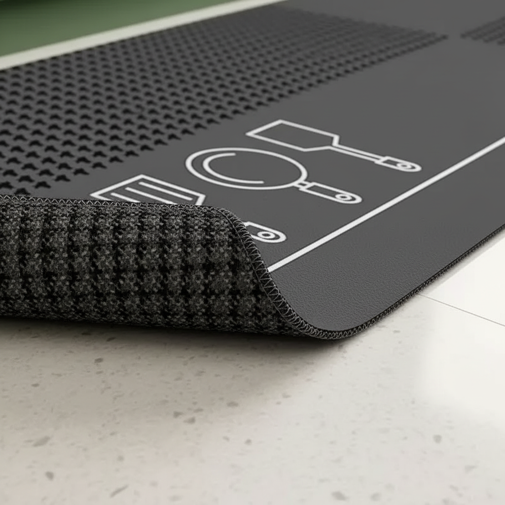 - Idéal pour protéger votre sol des éclaboussures et de l'usure, il offre également un certain confort lors des longues périodes passées debout.