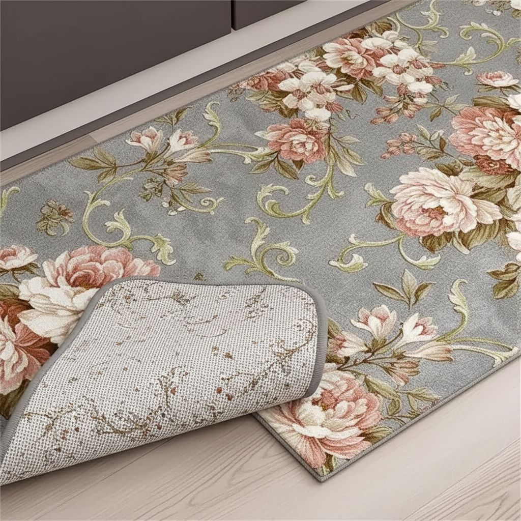 Tapis Cuisine gris floral lavable : Élégance et Entretien Facile