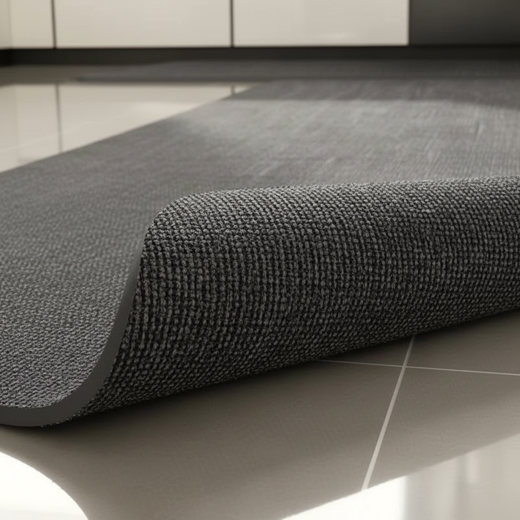 Apportez une touche d'élégance discrète et de sécurité à votre cuisine avec notre tapis gris foncé minimaliste.