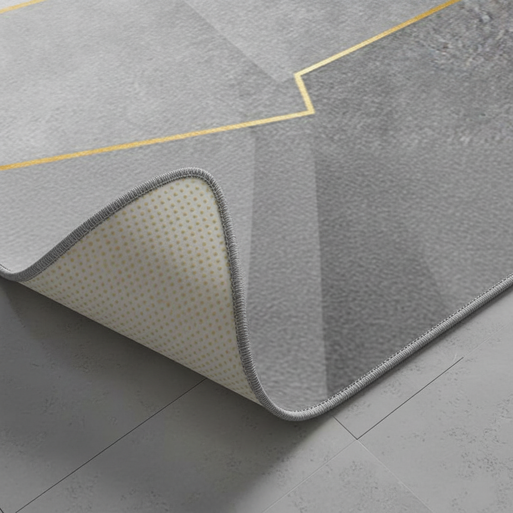 - Design : Affiche un motif géométrique contemporain, combinant des nuances de gris avec des lignes dorées élégantes.