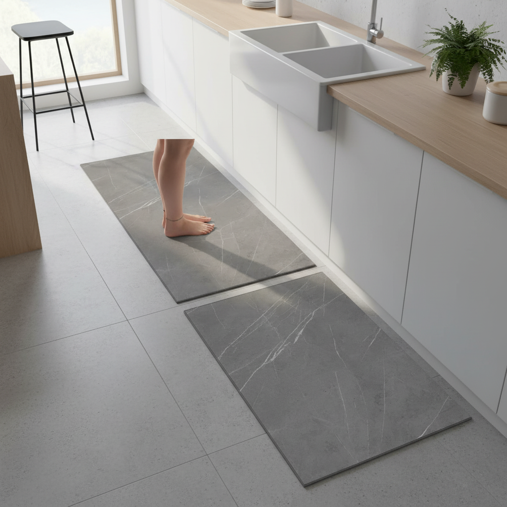Usage quotidien du Tapis Cuisine gris marbre antidérapant moderne