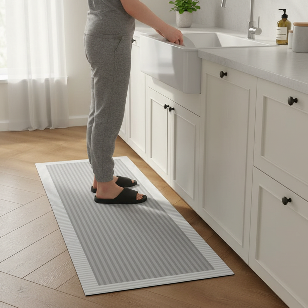 Découvrez la qualité et le design de notre Tapis Cuisine gris rayé antidérapant. Parfait pour protéger votre sol, ajouter une touche décorative et profiter d’un confort optimal au quotidien dans votre cuisine.