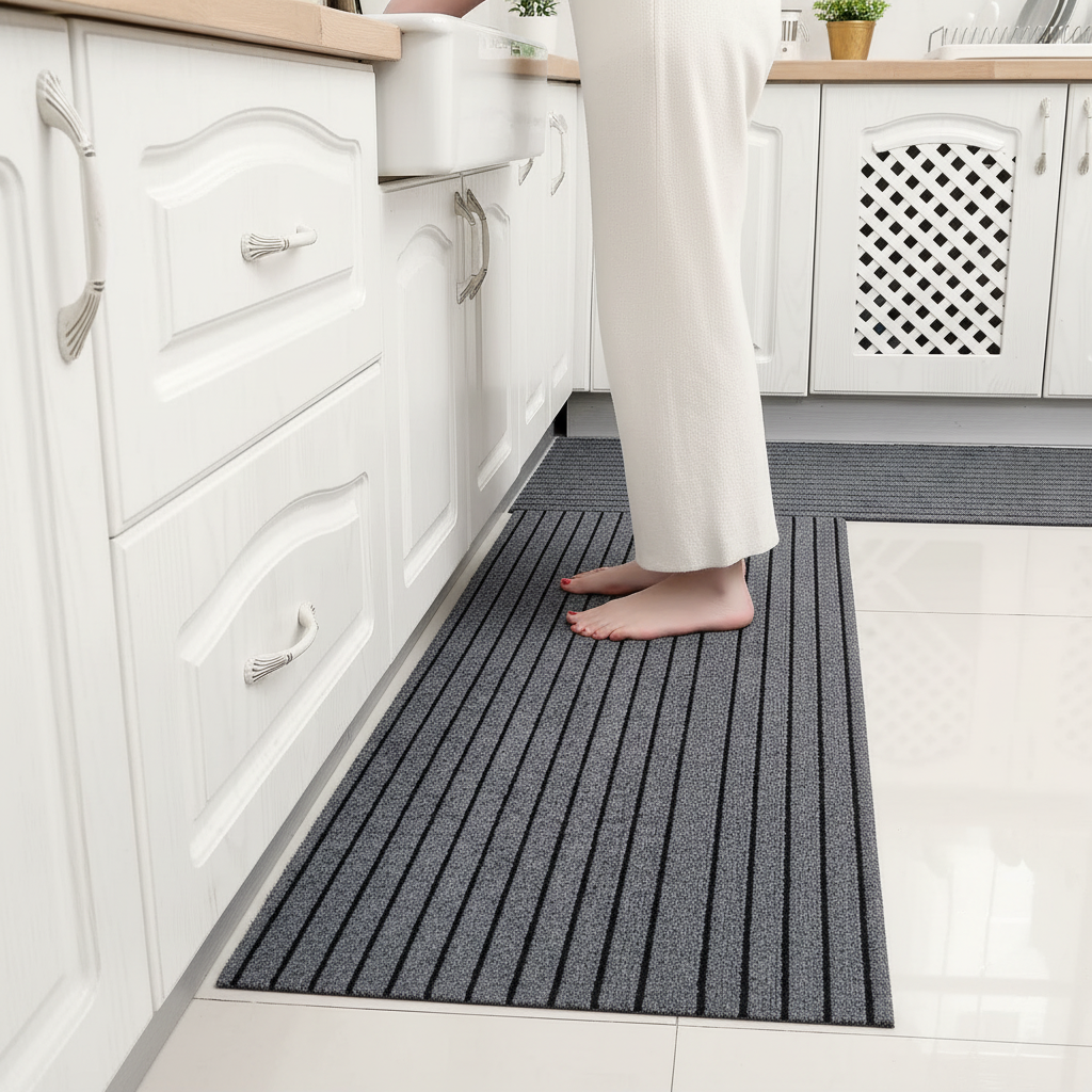 Usage et avantages du Tapis Cuisine gris rayé antidérapant