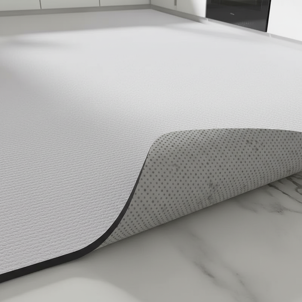 - Confort et Sécurité : Le tapis est épais pour un meilleur confort debout, et sa nature antidérapante assure une stabilité accrue.
