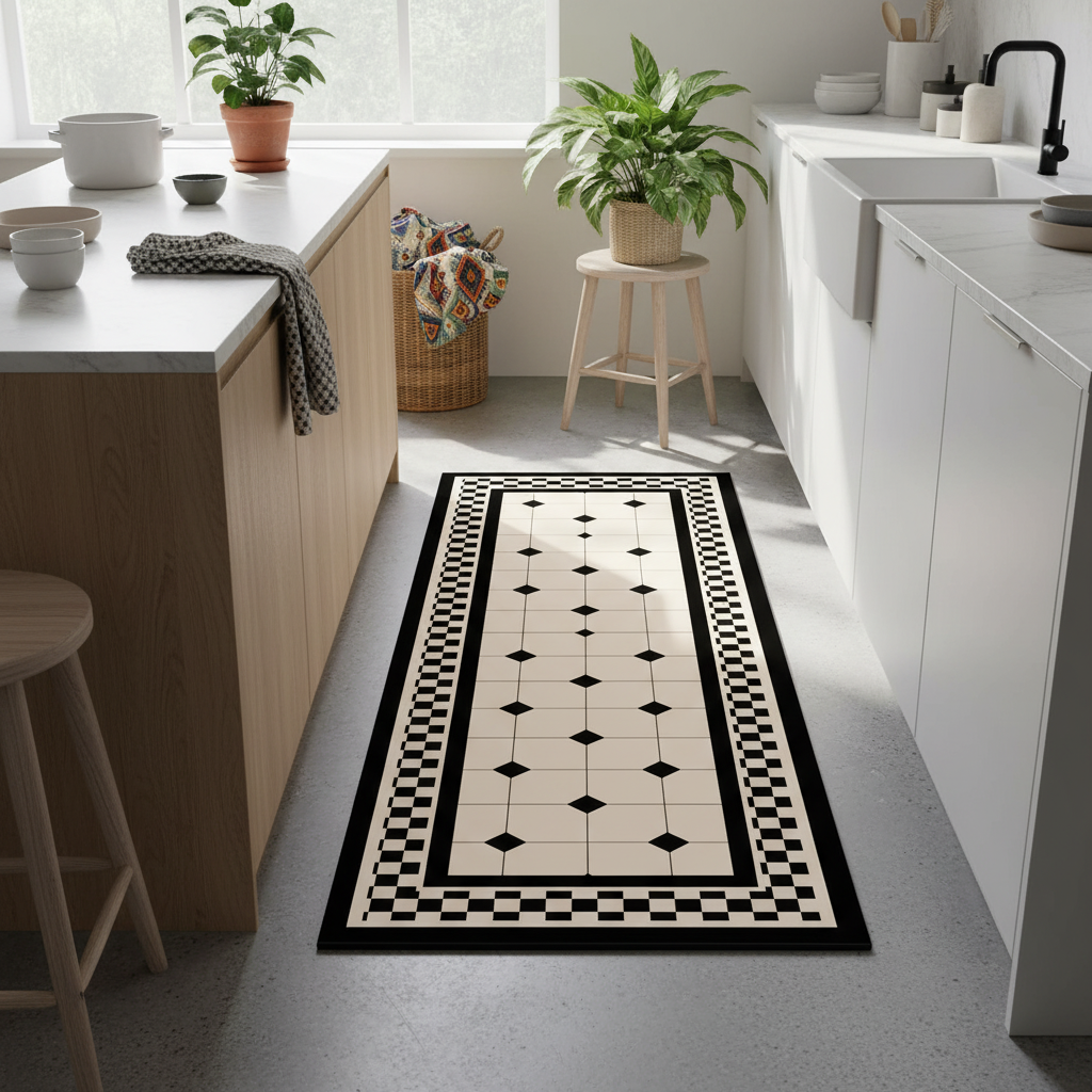 Découvrez la qualité et le design de notre Tapis Cuisine long motif carreaux antidérapant. Parfait pour protéger votre sol, ajouter une touche décorative et profiter d’un confort optimal au quotidien dans votre cuisine.