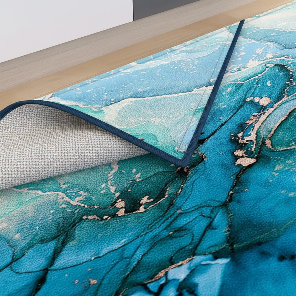 Tapis Cuisine marbré bleu antidérapant : Élégance et Sécurité