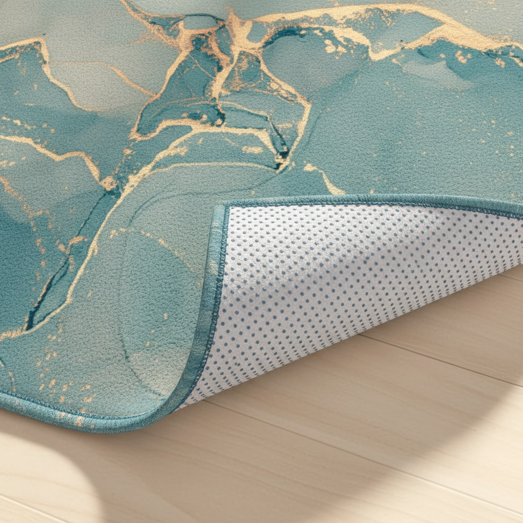 Tapis Cuisine marbré turquoise doré antidérapant : Caractéristiques détaillées