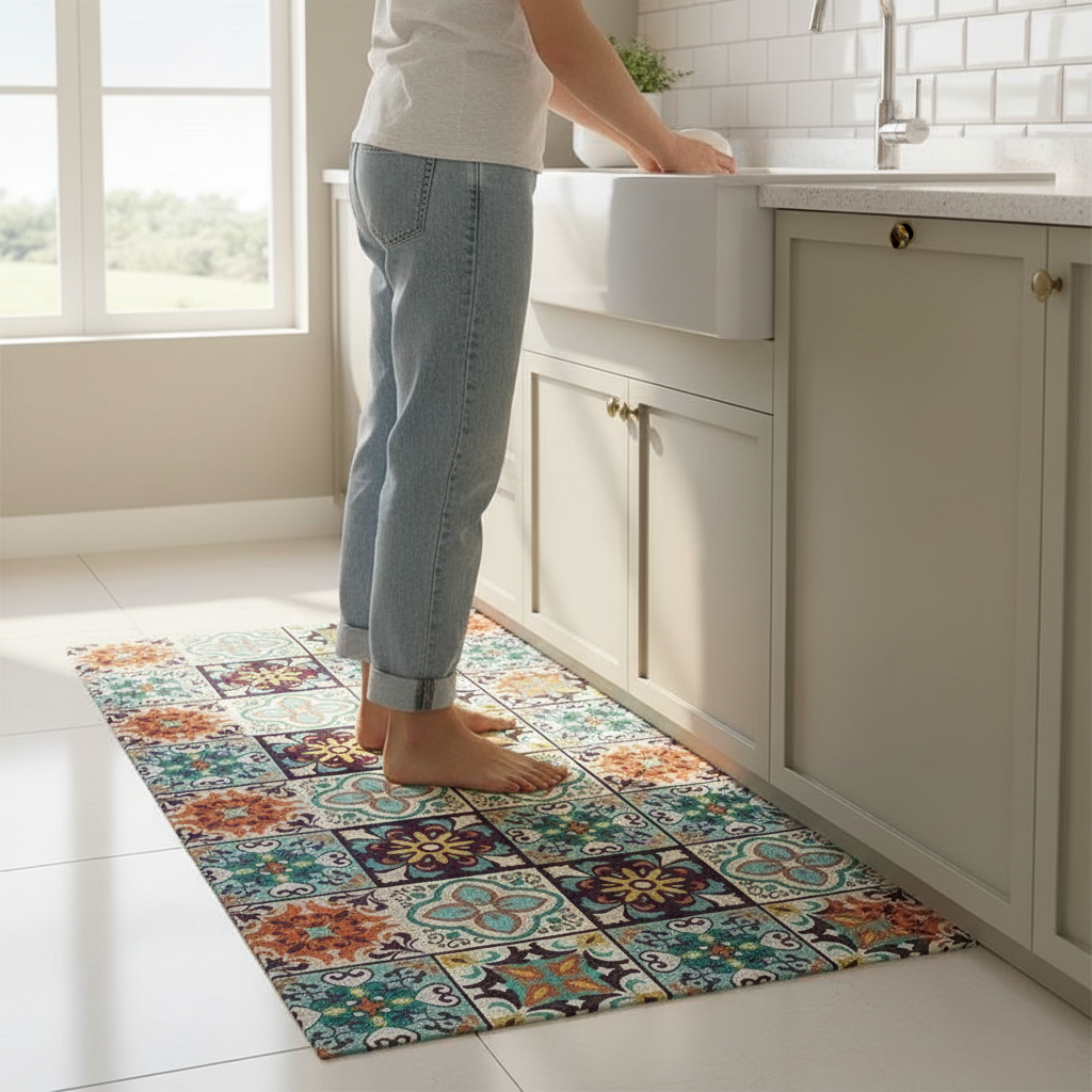 Ce tapis de cuisine mosaïque rétro apporte une touche de charme vintage et de sécurité à votre espace culinaire.