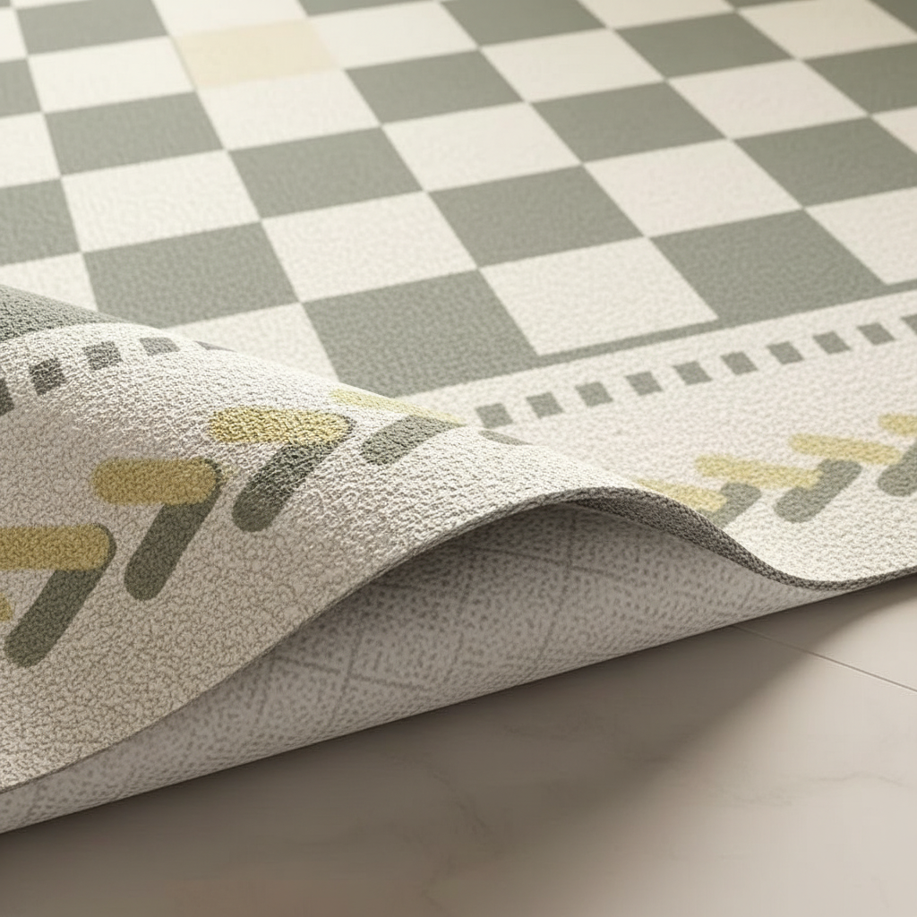 Ajoutez une touche d'élégance moderne et de sécurité à votre cuisine avec ce tapis au motif damier gris.