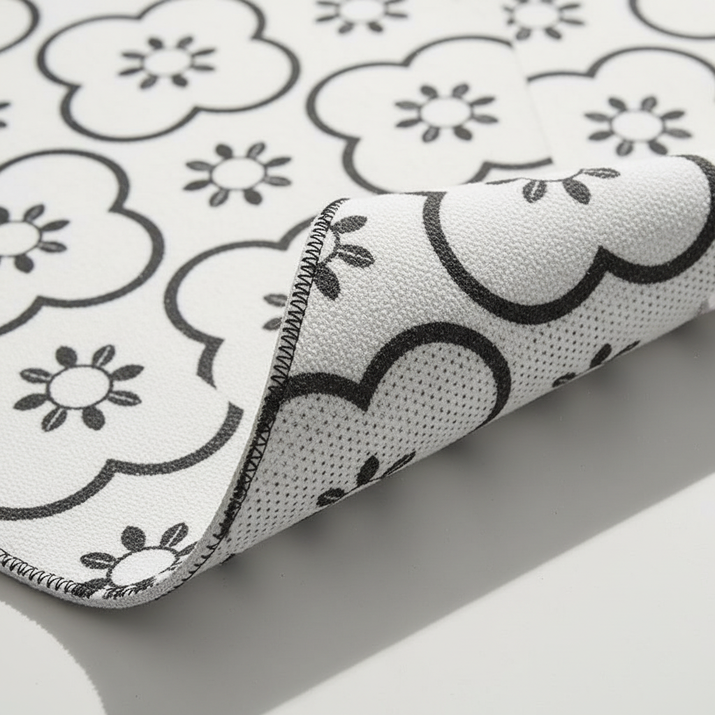 - Entretenez votre Tapis Cuisine motif géométrique blanc antidérapant en le nettoyant facilement avec une éponge humide ou un lavage doux, puis laissez-le sécher à l’air libre. Cette routine simple permet de préserver ses couleurs, sa texture et sa durabilité, même après une utilisation quotidienne dans la cuisine.