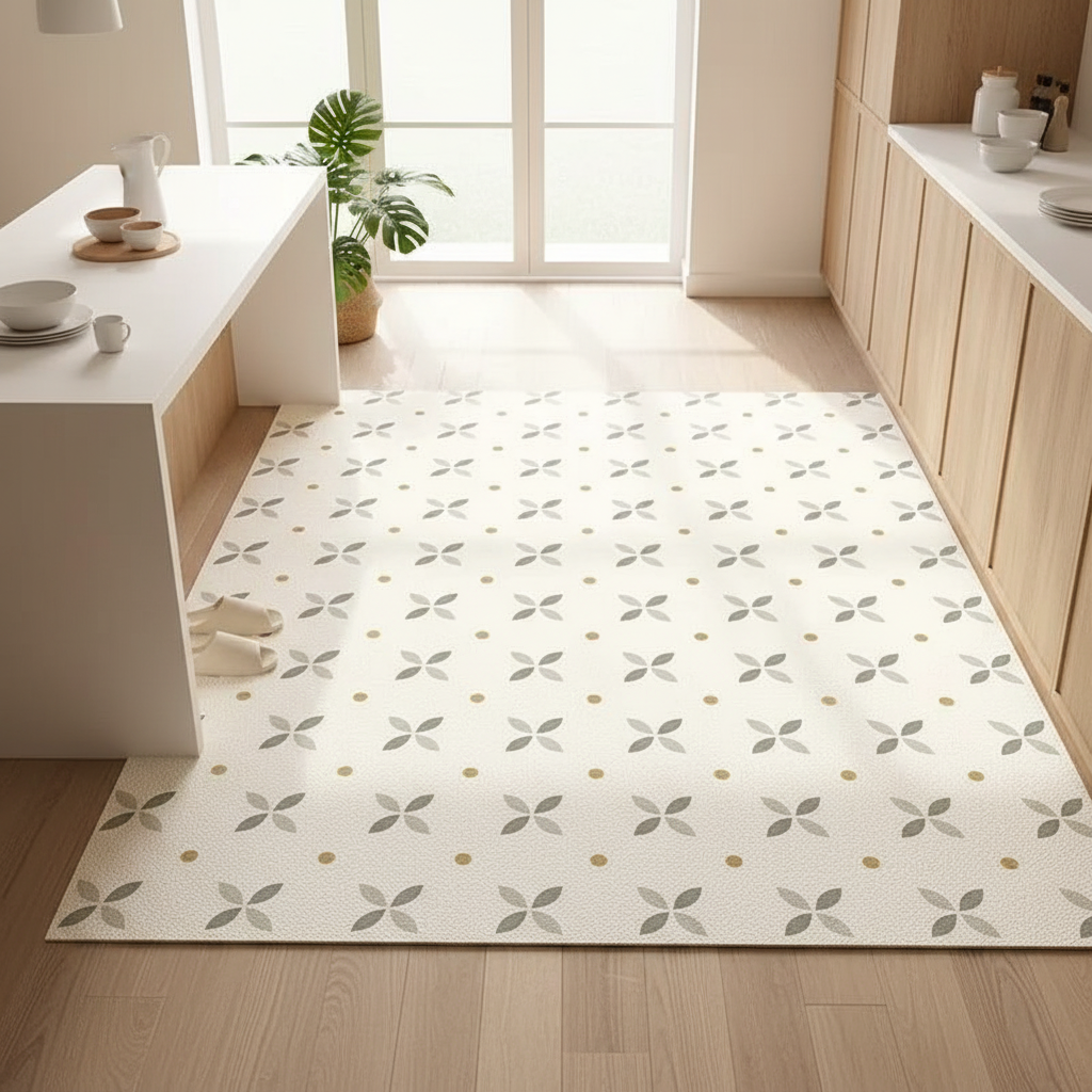 Ce tapis de cuisine en cuir arbore un motif moderne et offre une surface antidérapante, idéal pour sécuriser et embellir votre espace culinaire.