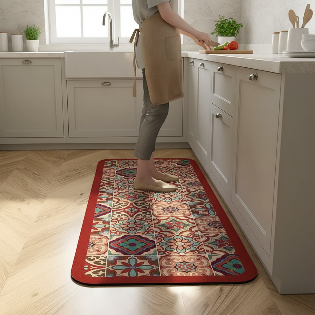 Usage du Tapis Cuisine motif mosaïque rouge antidérapant