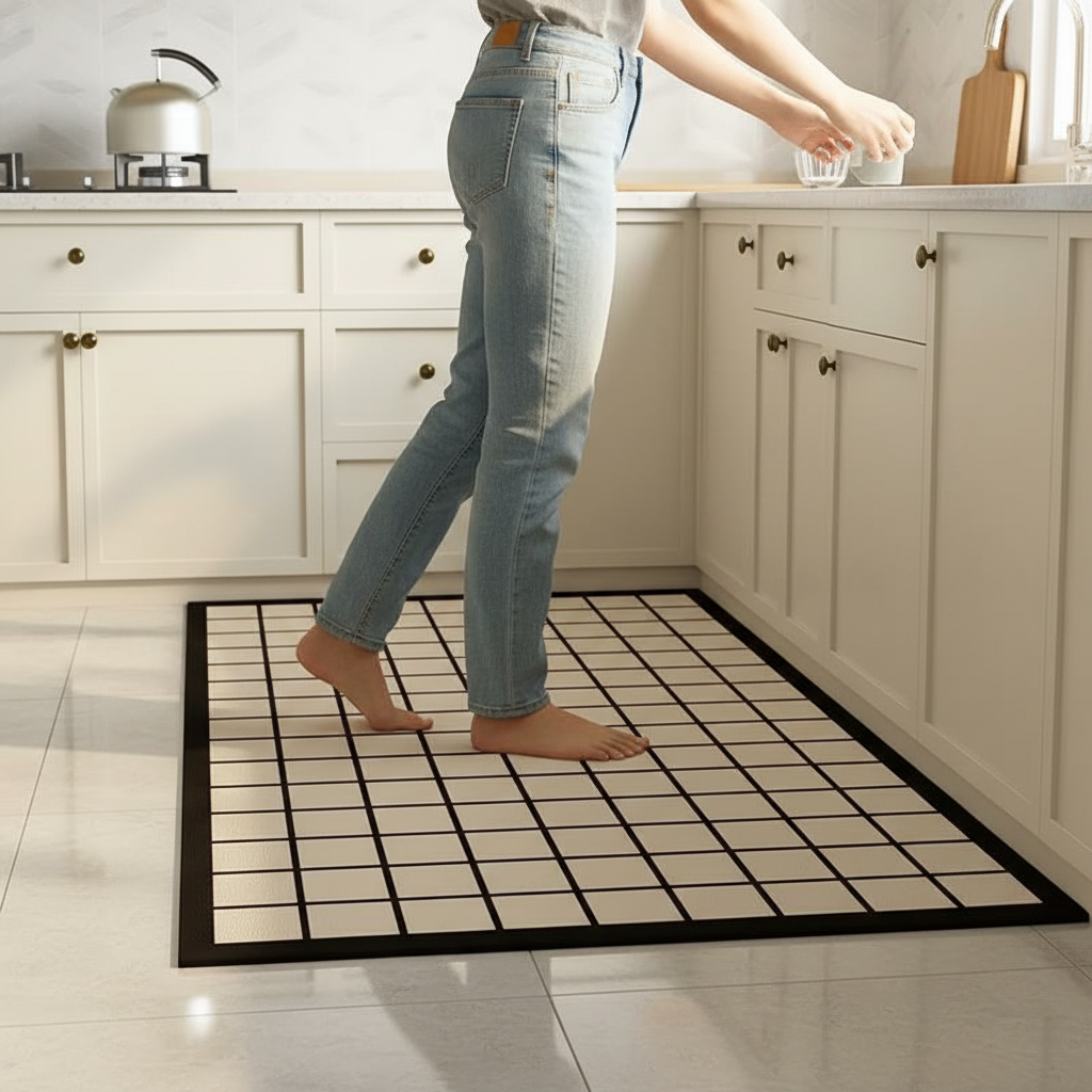 Ce tapis de cuisine motif quadrillé beige antidérapant est un ajout pratique et stylé pour toute cuisine moderne. Il offre une surface stable et confortable, conçue pour résister aux exigences quotidiennes.