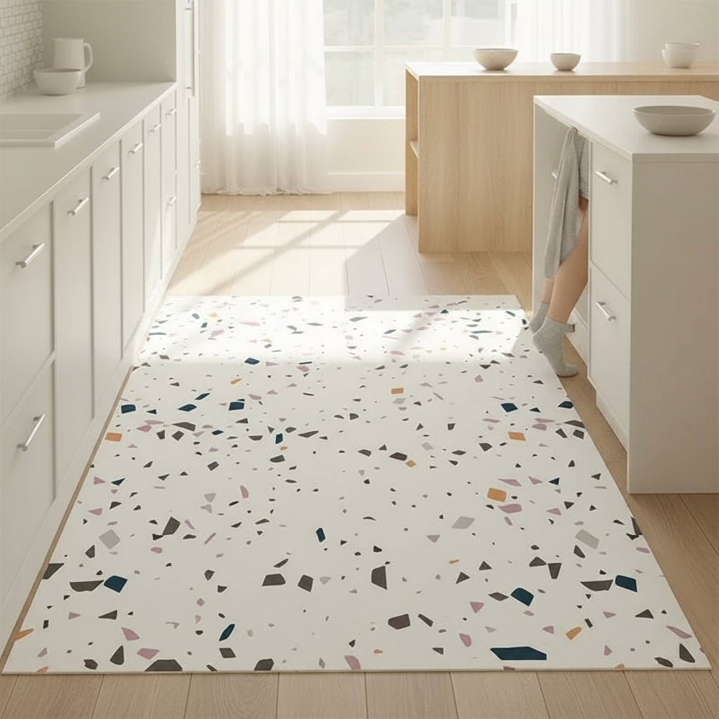 Découvrez la qualité et le design de notre Tapis Cuisine motif terrazzo multicolore antidérapant moderne. Parfait pour protéger votre sol, ajouter une touche décorative et profiter d’un confort optimal au quotidien dans votre cuisine.