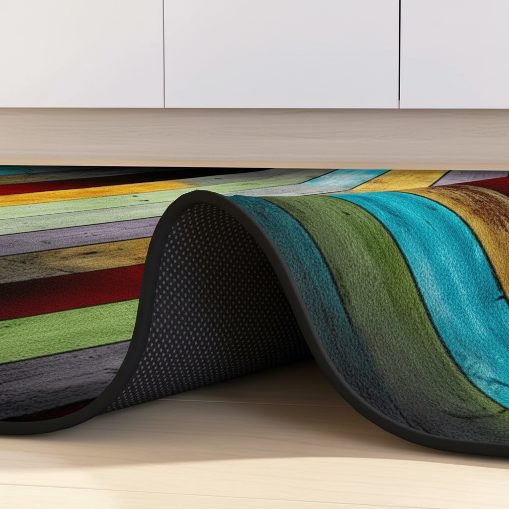 Tapis Cuisine multicolore effet bois antidérapant : Design Vibrant et Sécurité Optimale
