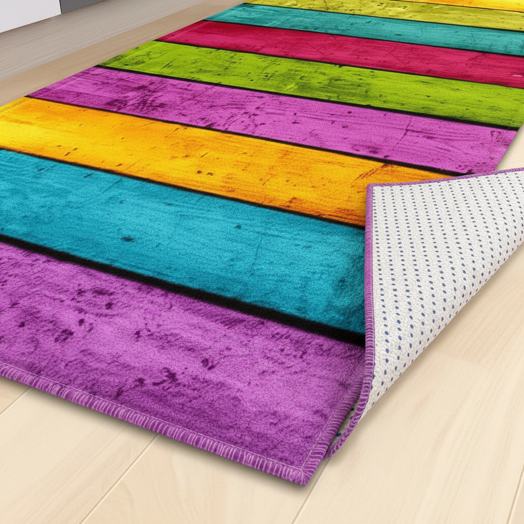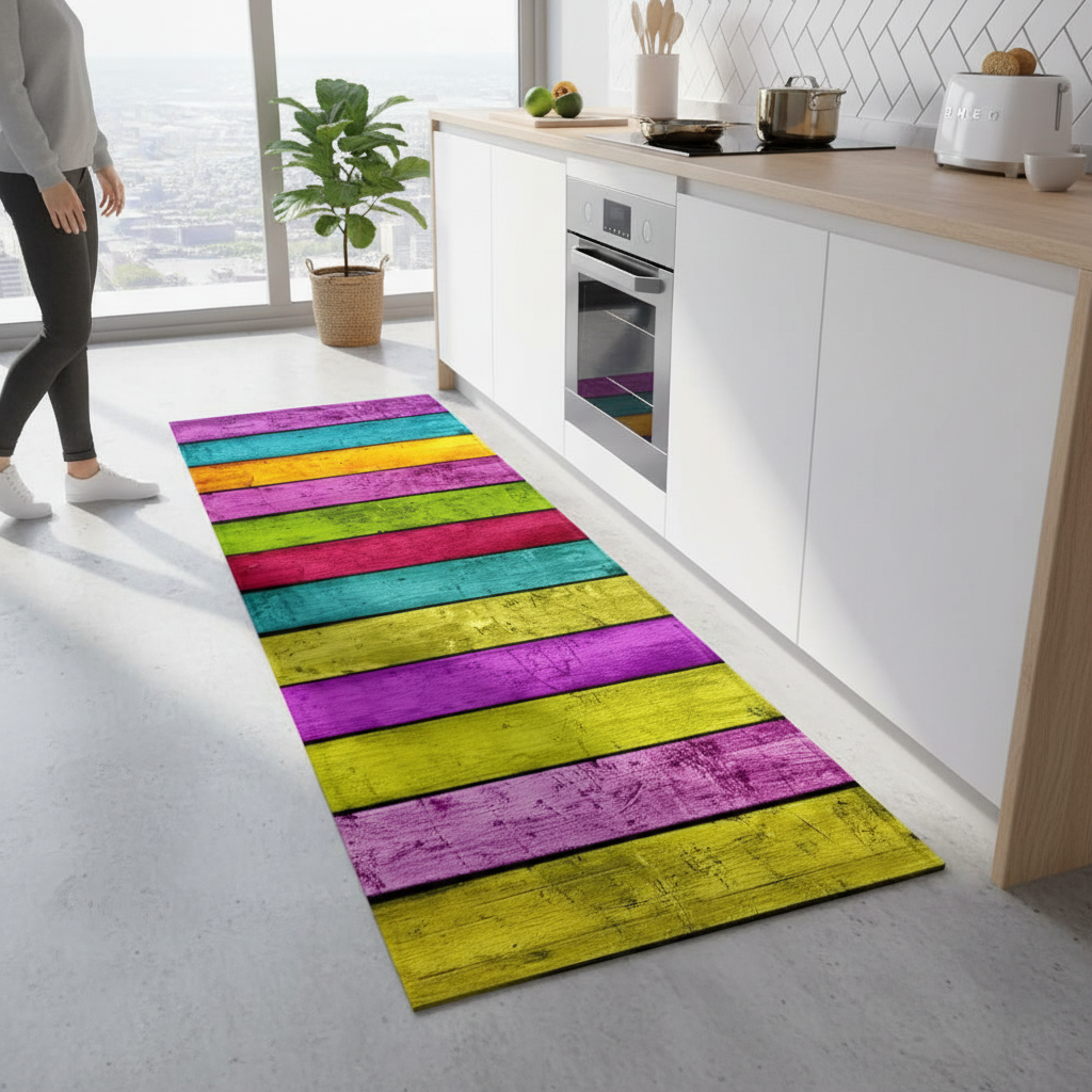 Tapis Cuisine multicolore motif planches antidérapant : Design Vibrant et Sécurité