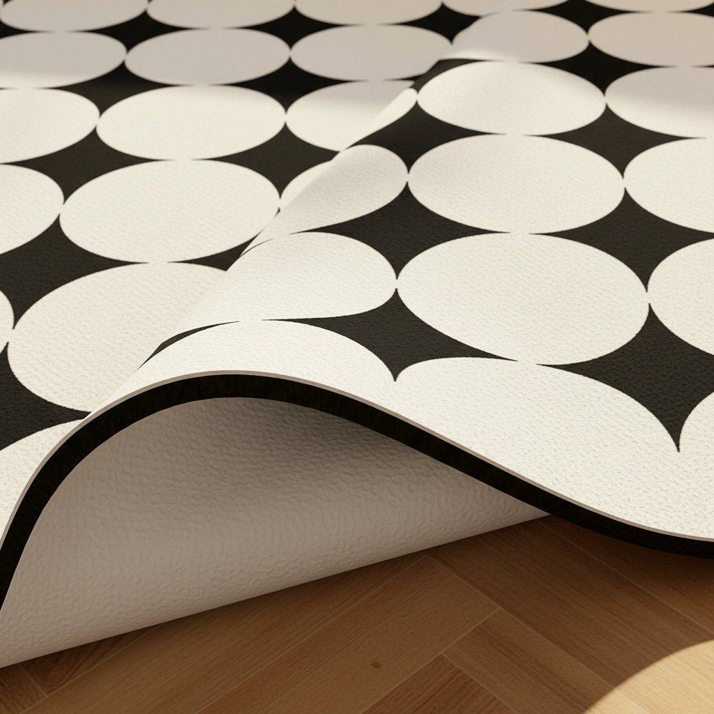 Tapis Cuisine noir et blanc cercles antidérapant : Design Moderne et Sécurité Quotidienne