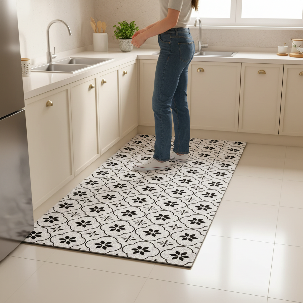 Découvrez la qualité et le design de notre Tapis Cuisine noir et blanc floral lavable. Parfait pour protéger votre sol, ajouter une touche décorative et profiter d’un confort optimal au quotidien dans votre cuisine.