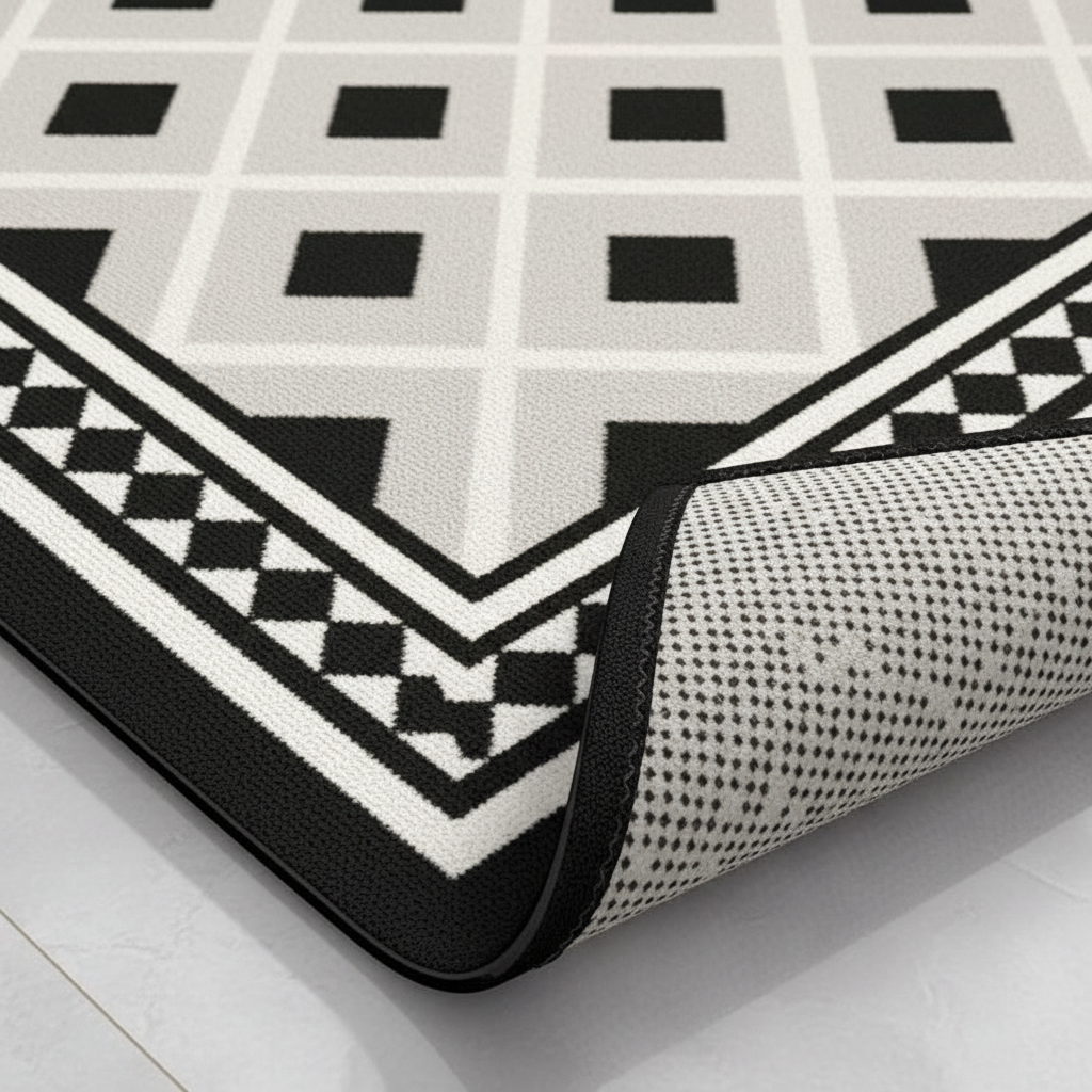 Tapis Cuisine noir et blanc motif géométrique antidérapant : Élégance et Sécurité